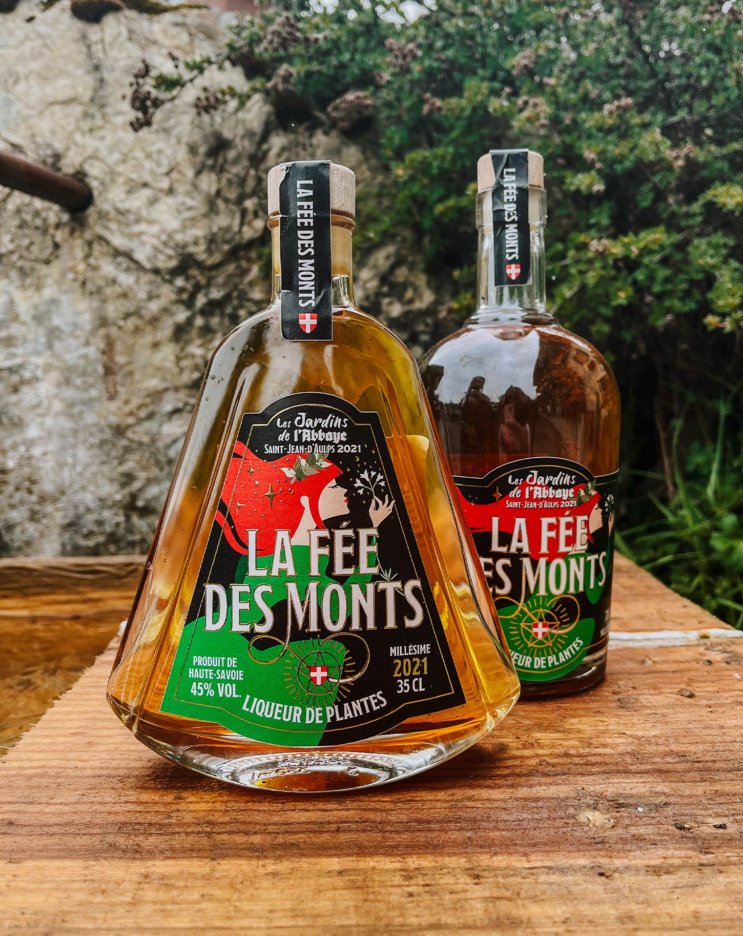 La montagne, en bouteille ! Dans la tradition des liqueurs de plantes alpines, nous avons réalisé une liqueur à partir des plantes aromatiques et médicinales des Jardins de l’Abbaye. Après plusieurs essais, échanges, ajustements etc… nous avons réalisé cette belle liqueur nommée La Fée des Monts ! Celle ci est composée de plus d’une dizaine de plantes, distillées, macérées, assemblées avec du sucre et de l’alcool biologique. Cette liqueur est millésimée et tout en conservant l’esprit, elle sera chaque année différente en fonction de la récolte des plantes des Jardins de l’Abbaye.